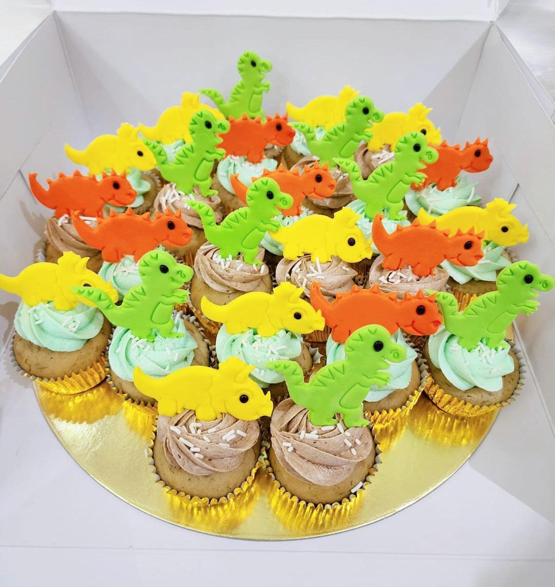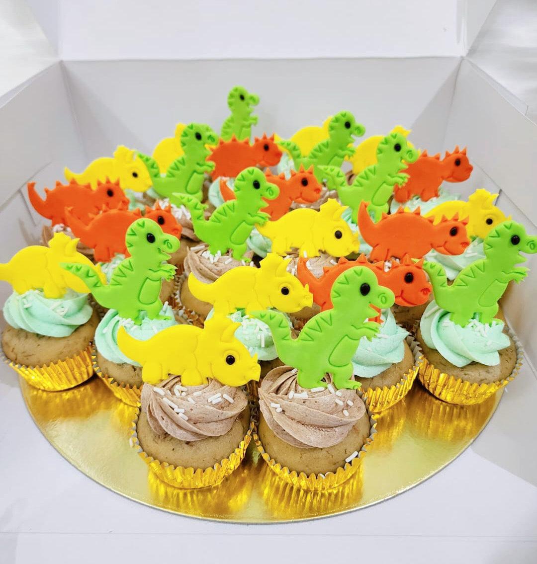 Styling: This is round board dino theme, decorated with fondant colorful Dinosaures and rice sprinkles. Our cupcake platter series are instagram-worthy, ideal for school celebration and great for gifting!